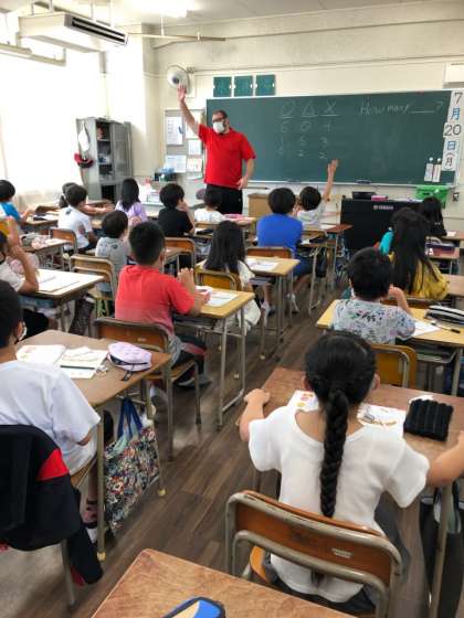 Rob先生とじゃんけんをして、勝ち・引き分け・負けを記録して、結果を発表しました。