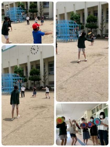 寄贈していただいたドッジビーは、早速、各クラスに配布しました。休み時間には、子どもたちもドッジビーで、元気に体を動かしています。