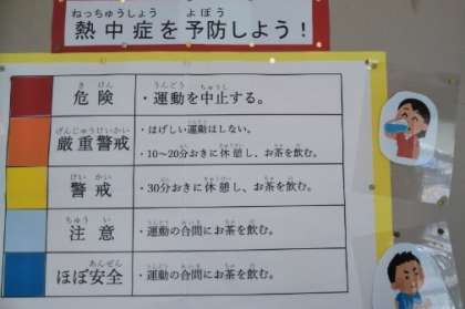 今週に入り、天気が良くなりましたが、気温が高くなってきています。WBGT「暑さ指数」が31を超えると、運動については「原則禁止」です。