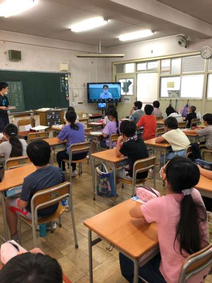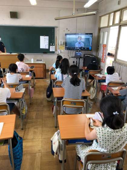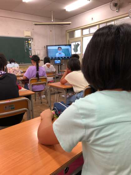 昨日、Teamsを使って、児童朝会を教室で行いました。
