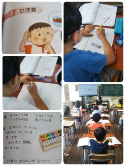 1学期に学習した内容を振りかえり、算数のまとめの学習をしています。しっかり復習することが大切です。
