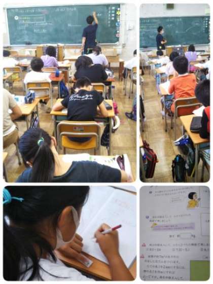 5年生の算数の時間です。「商を四捨五入して、上から2けたの概数で表そう」をめあてに学習を進めました。「上から2けたの概数で表すには、上から何けためを四捨五入すればよいか」を考え、意見を出し合いました。最後に確認問題をしました。