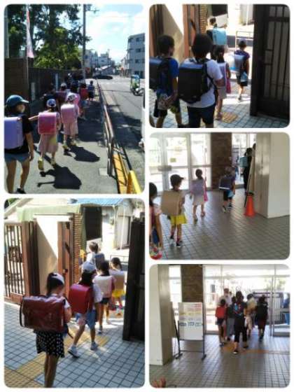 昨日は、避難訓練を行いました。台風の接近が予想された時、早めに家に帰宅するための集団下校の訓練です。地域班ごとに集合して、6年生の班長が中心に人数を確認しました。