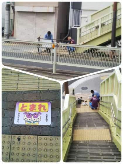 今日は、区役所の方が「とまれ」のマークを設置してくださいました。