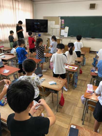計算カードを使って、何分で最後まで計算できるのかを計りました。