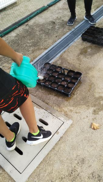 栽培委員会が種を植えていました。「なにわの伝統野菜」のなかの「天王寺かぶら」の栽培に挑戦します。水やりも頑張って、大きな「天王寺かぶら」を育ててほしいです。