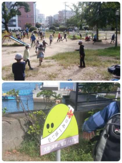 海遊館では、自分の体よりも大きい魚やジンベイザメなど、興味津々に観察していました。また、天保山では、子ども達の想像していた山とは違っていたので、とても驚いていました。お弁当の後、みんなで楽しく遊びました。