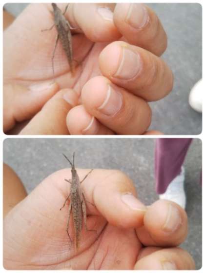 あまり草が生えていないところですが、茶色のバッタが元気にとび跳ねていました。