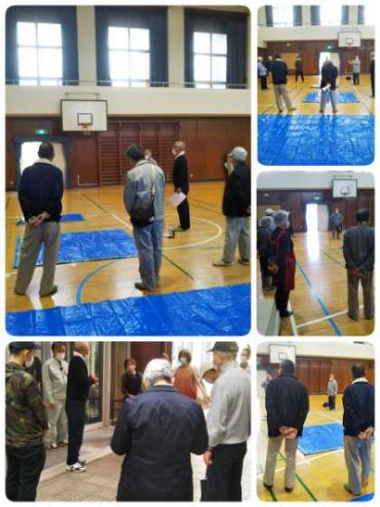 清水連合振興町会の防災リーダーさんを中心に、地域防災訓練を行いました。今年度は、コロナ過の中での避難所開設について検討をしました。体育館では、4平方メートルの広さを確保することや体育館が満員になった時に校舎のどこに避難するかをシュミレーションしながら回りました。