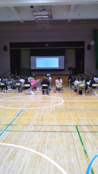 修学旅行の保護者説明会を講堂で行いました。行き先は、広島・宮島方面です。安全第一に思い出に残る修学旅行になるようにしていきます。