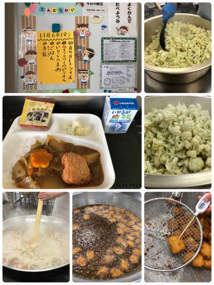 今日の献立は、カツカレーライス・カリフラワーのピクルス・いり黒豆・牛乳です。