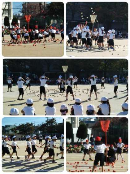 小学校はじめての運動会、思いっきり頑張りました。玉入れの前のダンスがかわいかったです。