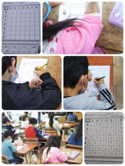 算数で、50マス計算に挑戦しました。計算を確実にはやくできるように頑張っています。