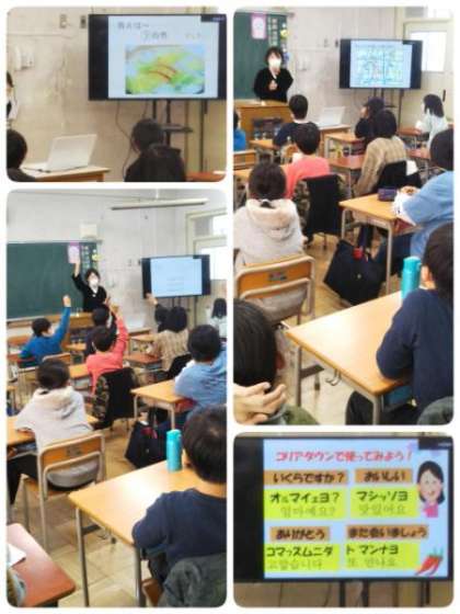 5年生は、社会見学で「コリアタウン」へ行きます。今日は、ソンセンニムにコリアタウンの歴史や日本各地のコリアタウンの紹介など、お話を聞きました。また、クイズでは、キムチがかつて白色だったっこと、唐辛子は日本から伝わって、今の赤みがかかったキムチになったことなど、教えていただきました。