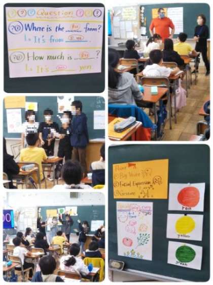「Let's think about our food」〜食材を通して世界のつながりを考え、メニューを発表しよう〜のテーマで学習しています。今日は、「オリジナルカレー」を考えて、グループで発表しました。どの班も大きな声で、笑顔でジェスチャーを交えながら、楽しく発表することができました。
