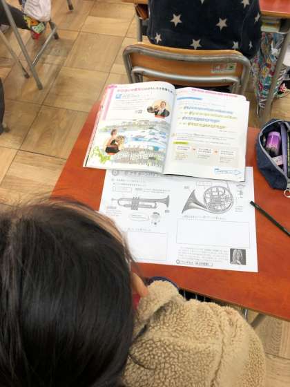 トランペットやホルンの違いや旋律を追いながら、鑑賞しました。