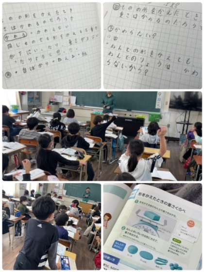 3年生の理科では、「ものの形と重さ」の学習をしています。