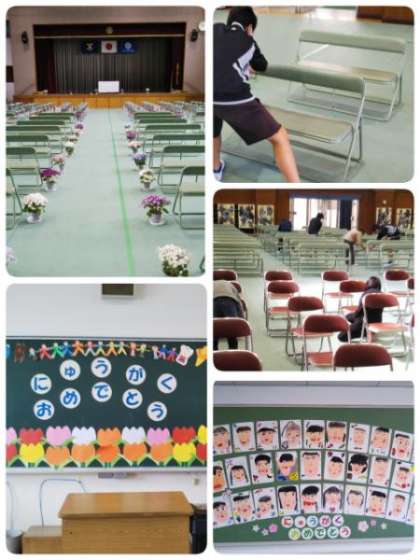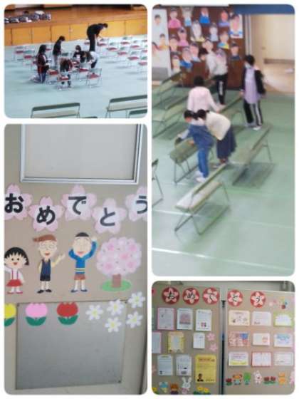 本日、新6年生が登校し、明日の入学式の準備を行いました。当日は、参加できませんが、入学式の成功を願って、みんな一生懸命頑張っていました。最高学年の自覚をしっかり持ち、とても頼もしく感じました。