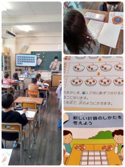 3年生の算数の学習です。「新しい計算の仕方を考えよう」の単元で、わり算の学習に入りました。