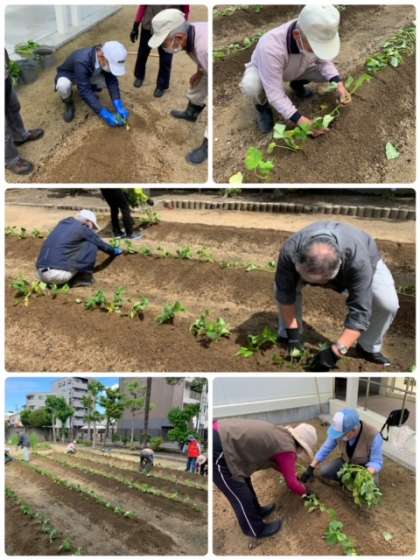 今日は地域の方々にさつまいもの植え付けをしていただきました。