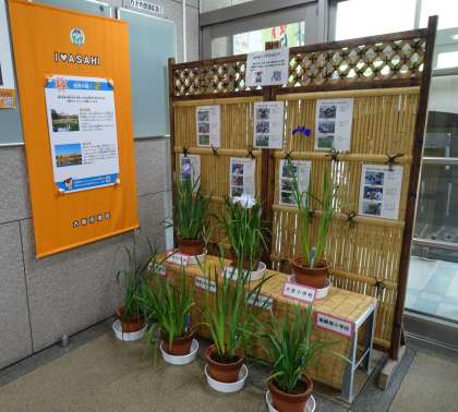 旭区内の小学校で育てた菖蒲の花が、区役所に展示されています。清水小学校の菖蒲の花も展示されています。菖蒲の花は、「旭区の花」として、長年親しまれています。区役所に行かれることがありましたら、是非、ご覧ください。