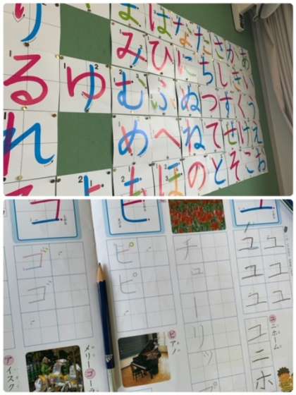 ひらがなの学習は終わり、かたかなの学習も順調に進んでいます。