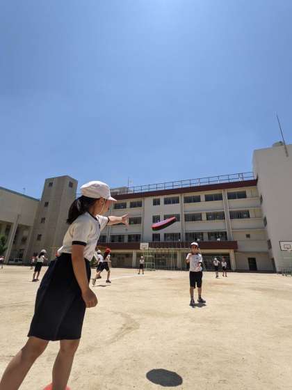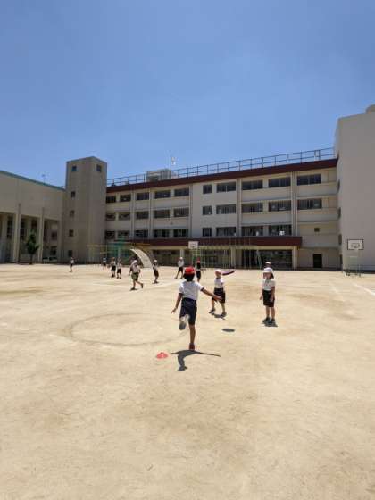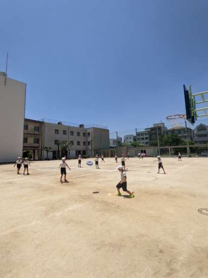 3年生が体育でフリスビーをしました。