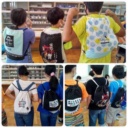 6年生が家庭科でナップザックを作成しました。ミシンでしっかり縫い合わせ、素敵な作品が完成しました。また、林間や修学旅行でも活用してください。