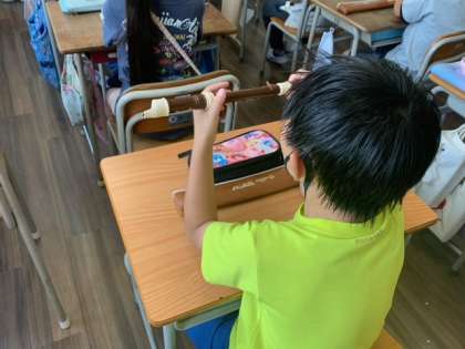 このご時世、一人ずつリコーダーを吹いています。