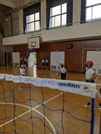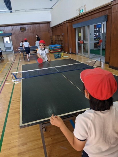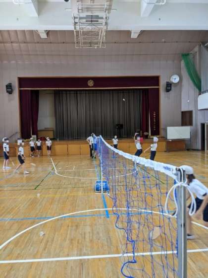 体育館ではバドミントンクラブと卓球クラブが体を動かしていました。