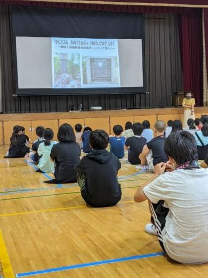 修学旅行で行く、原爆ドームや慰霊碑、平和記念資料館などについて、お話を聞きました。