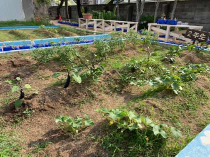 生活科で植えたナスが大きく成長しています。