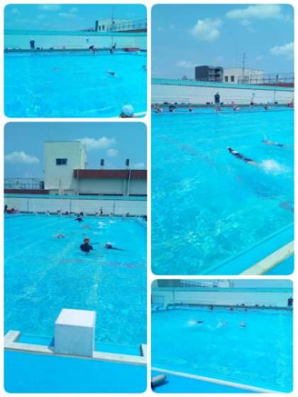 高学年のプールの様子です。久しぶりのプールでしたが、しっかりとバタ足やクロールの練習をしました。今日は、天気も良く気持ちよさそうでした。