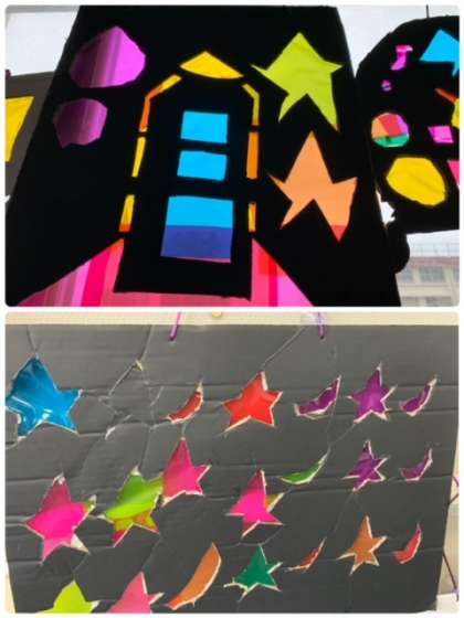 2年生の教室では、先日取り組んだ図工の作品が飾られていました。