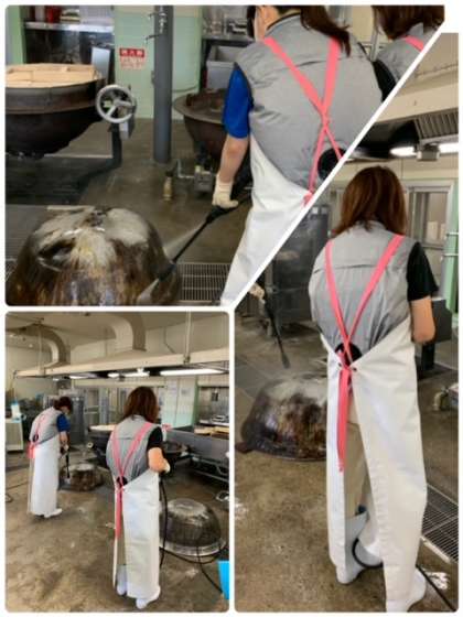 暑い中、大きなお鍋を掃除するのは一苦労です。