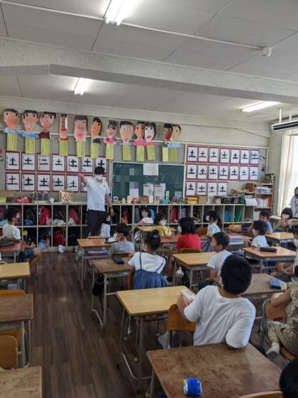 個性的な貯金箱が、それぞれの教室にならんでいます。