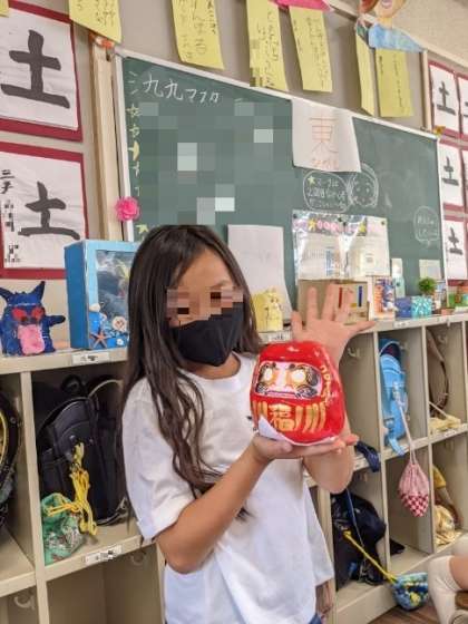 「願いだるまです。コロナ撲滅とダンスが上手になるように願いを込めました。」