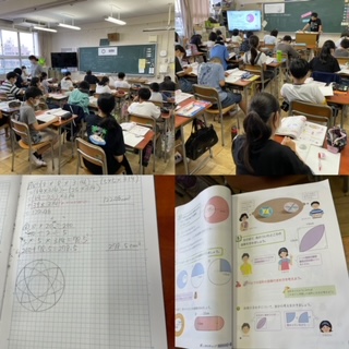 円の公式を使っていろいろな形の面積を求めていく6年生
