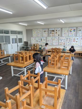 廊下はもちろん、図工室や体育館、理科室などの特別教室も毎日掃除をしています。
