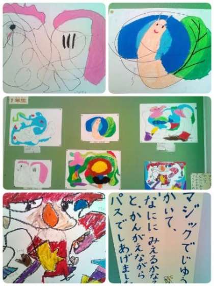 マジックで線を自由にかいて、そのあと「何に見えるか」それぞれが考えました。