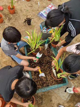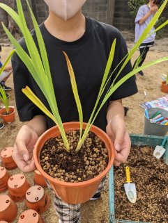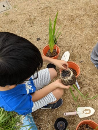 区役所の方や地域の方の指導を受けながら、委員会で来年の春に向けて、花菖蒲の植え替えをしました。