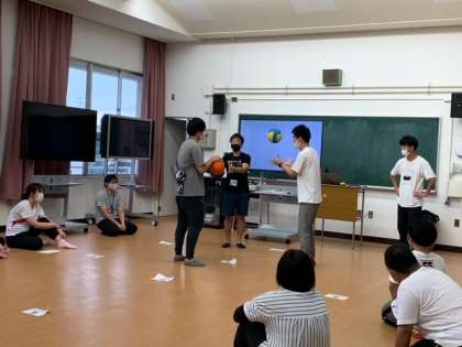 「ボールをアップと言ったら下に、ダウンと言ったら上に投げてください。」