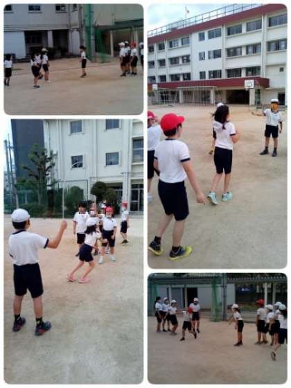 4年生の体育の時間の様子です。「長縄跳び」をしました。みんなで声をかけながら、リズムよく跳んでいます。