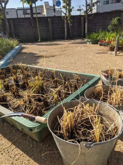 今回はバケツで稲を育てましたが、しっかりと根が張っていました。立派な稲穂とはいきませんでしたが、お米を作る大変さを知ってもらって良かったと思います。
