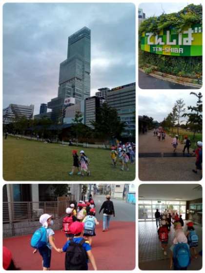 天王寺駅についたら、「ハルカスや!!」との声。とっても高いハルカスを見て、びっくりしていました。その後、「てんしば」で、お弁当を食べました。とてもおいしかったです。
