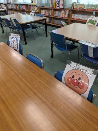 図書委員会では、ソーシャルディスタンスを確保するための席の掲示物を補強したり、本の整理をしたりしました。