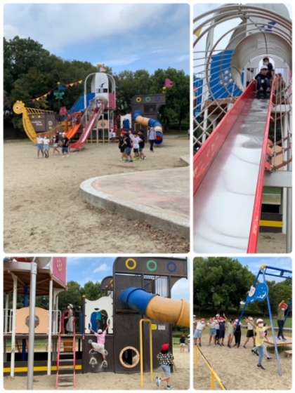 楽しい遊具がいろいろある公園で、元気いっぱい遊んでいます。