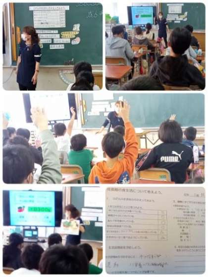 旭区の栄養教諭が来校し、栄養学習を行いました。「成長期の食生活について考えよう」がテーマです。