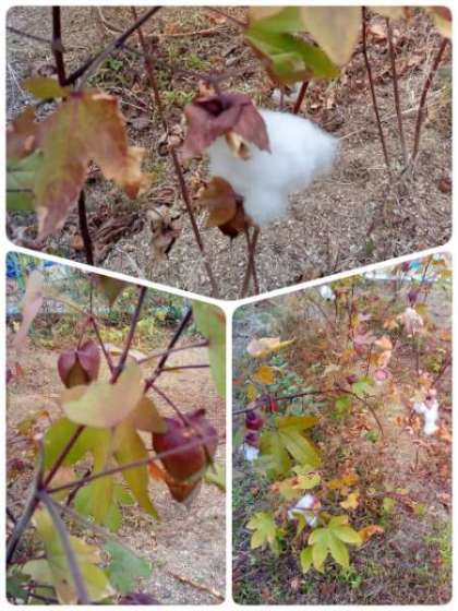 1年生の学習園をのぞいてみると、「わた」の実ができていました。ふわふわしたこの「わた」は、繊維を綿に加工して利用されます。