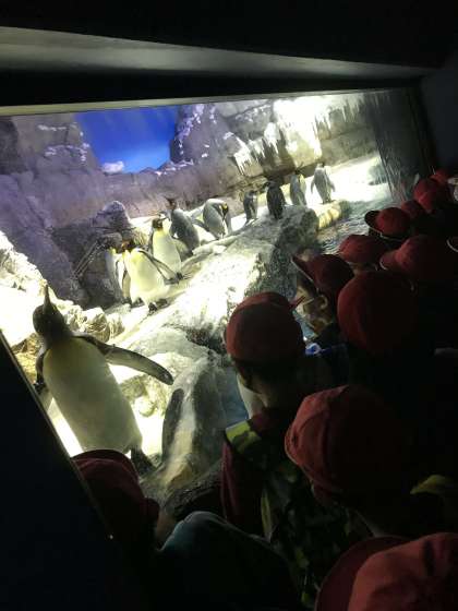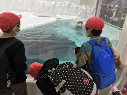 館内では二列に整列し、「友だちが見れてるかな?」とお互いに気を配りながら上手に観覧していました。ペンギンやアザラシ、ラッコをはじめ、たくさんの海の動物や魚を見て、子どもたちも興奮気味でした。
